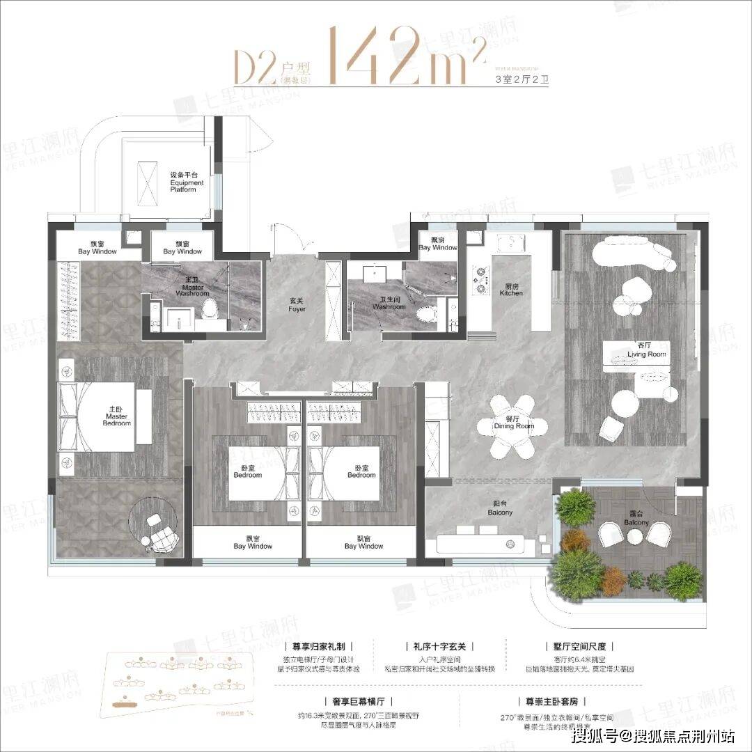 这是一个要让江核产物力曲逼标杆豪宅的项目。小区景不雅,契合一线河景的天然劣势,户户有天台,以上说的这些,102㎡三房户型起步,